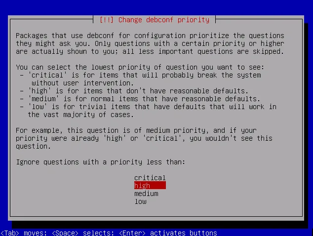 To switch to the normal installer flow, choose Change debconf priority in the installer menu, then high.